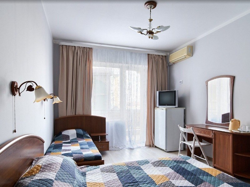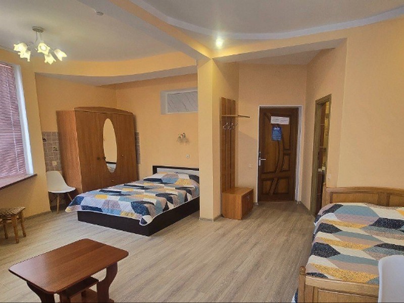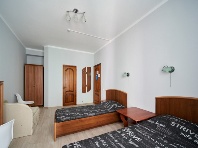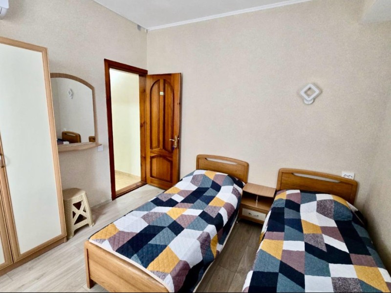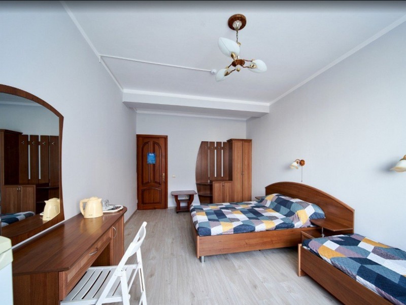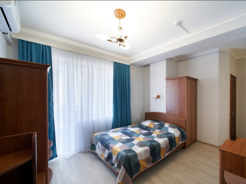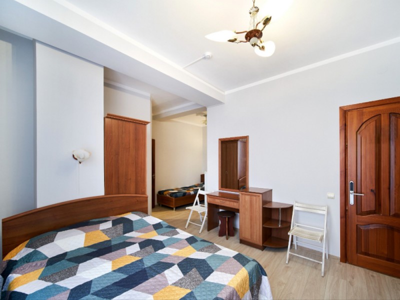 | Мебель: | односпальные и 2 двуспальные кровати, шкаф, трюмо, вешалка, зеркало |