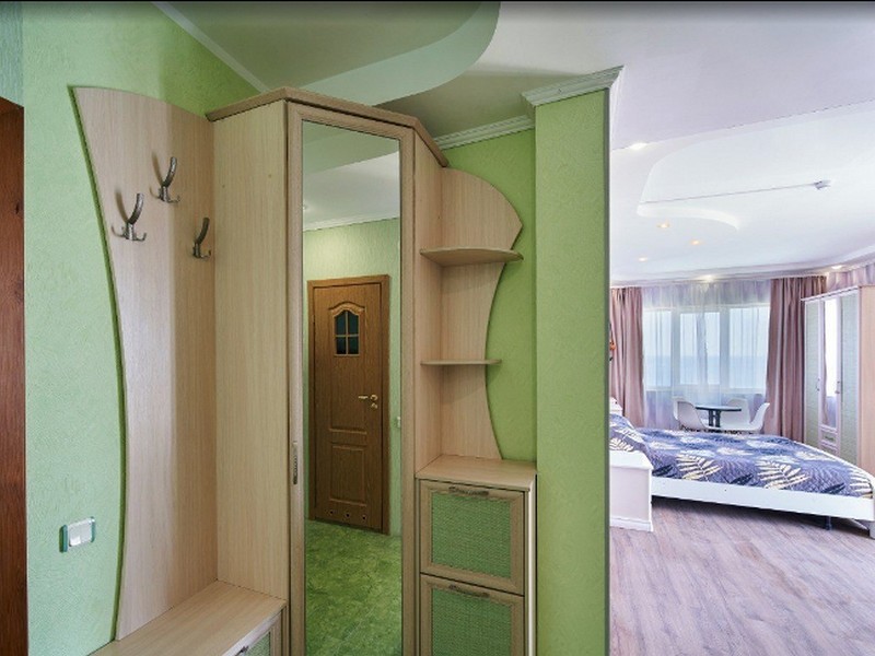 | Мебель: | односпальные и двуспальная кровати, диван-кровать, стулья, шкаф, прикроватные тумбочки, трюмо, прихожая, вешалка, зеркало |