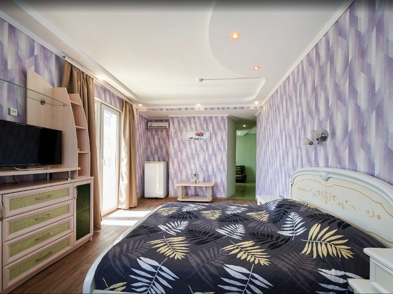 | Мебель: | двуспальная кровать, диван-кровать, полуторный диван, стулья, шкаф, прикроватные тумбочки, трюмо, вешалка, зеркало |