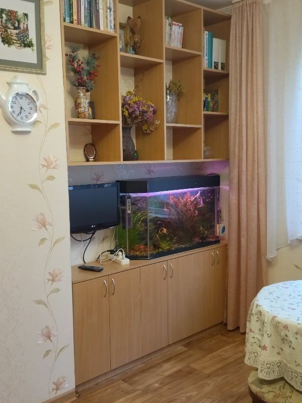 | Мебель: | диван-кровать, шкаф, стулья, прикроватные тумбочки, стол, комод, прихожая, вешалка, зеркало, кухонный гарнитур, обеденная зона |